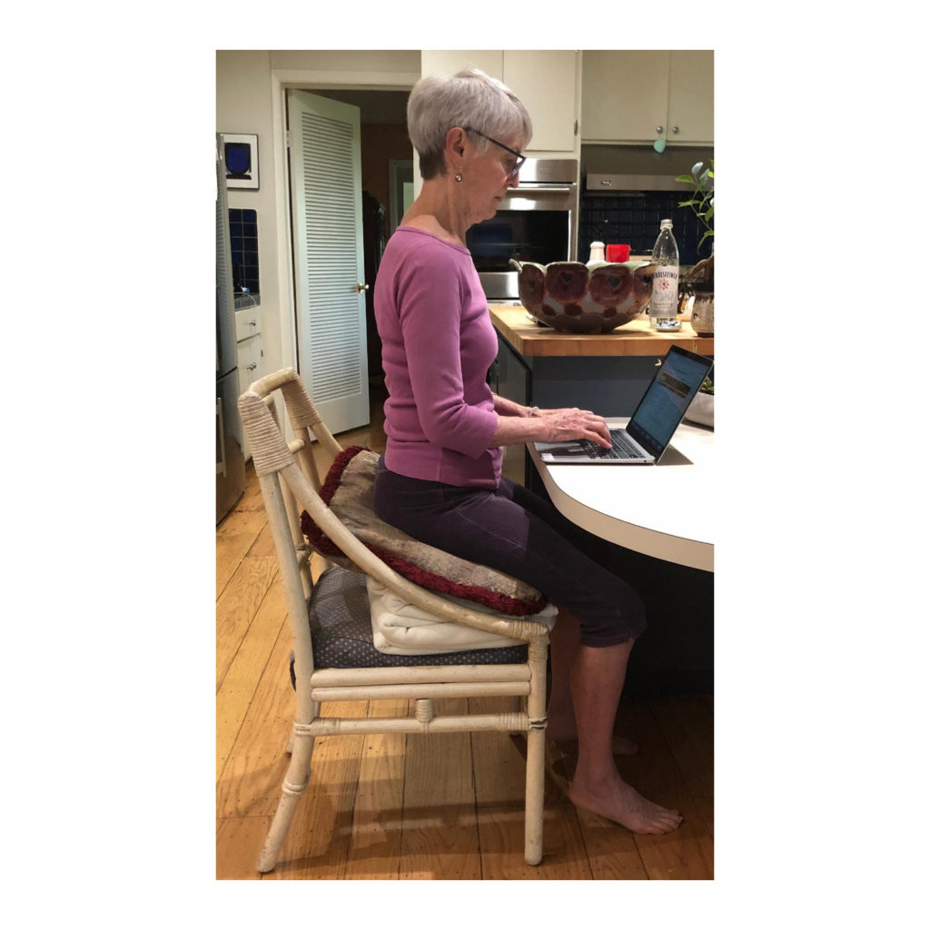 Jean demonstrates the guidelines for sitting comfortably at the computer.